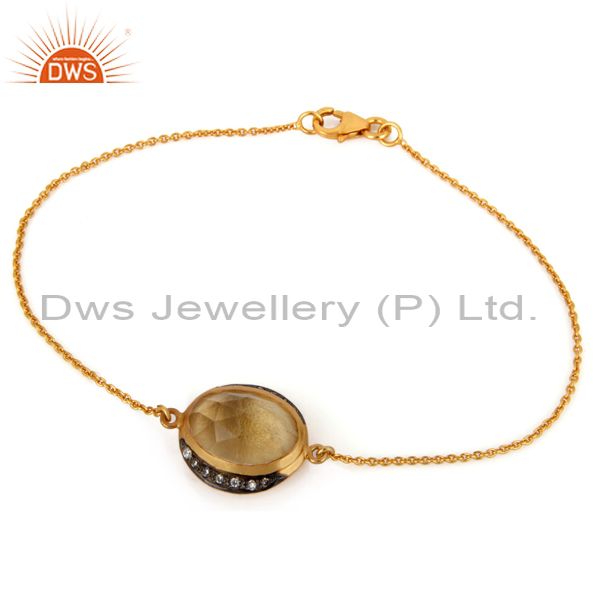 18K Gold Plated 925 Sterling Silver Natural Citrine Gemstone Bracelet Jewelry