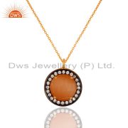 18K Gold Plated 925 Sterling Silver Peach Moonstone & Pave White Zircon Bracelet
