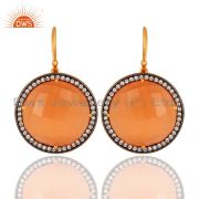 18K Gold Plated 925 Sterling Silver Peach Moonstone Bracelet With White Zircon