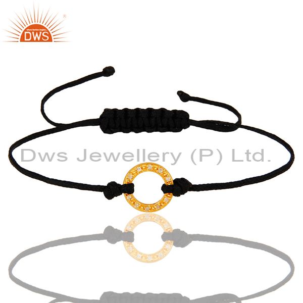 18K Gold Plated 925 Sterling Silver White Zirconia Cotton Dori Macrame Bracelet
