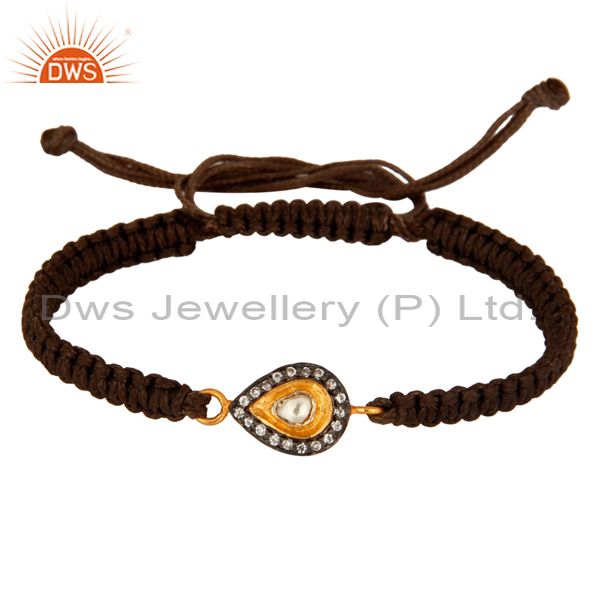 18K Gold Plated Cz Crystal Polki Fashion Shambhala Macrame Bracelet