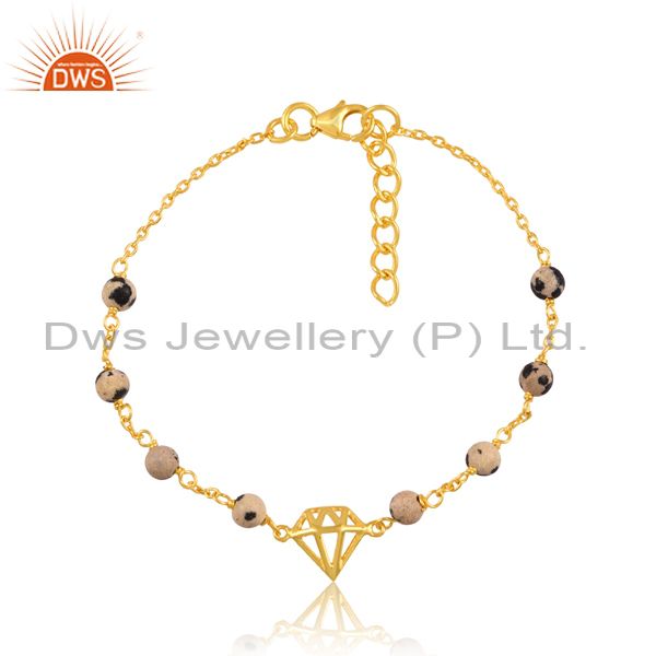 18K Gold Plated Dalmatian Jasper Studded Premium Bracelet