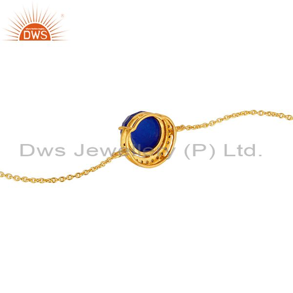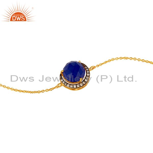 18K Gold Plated Sterling Silver Blue Aventurine And CZ Half Moon Charms Bracelet