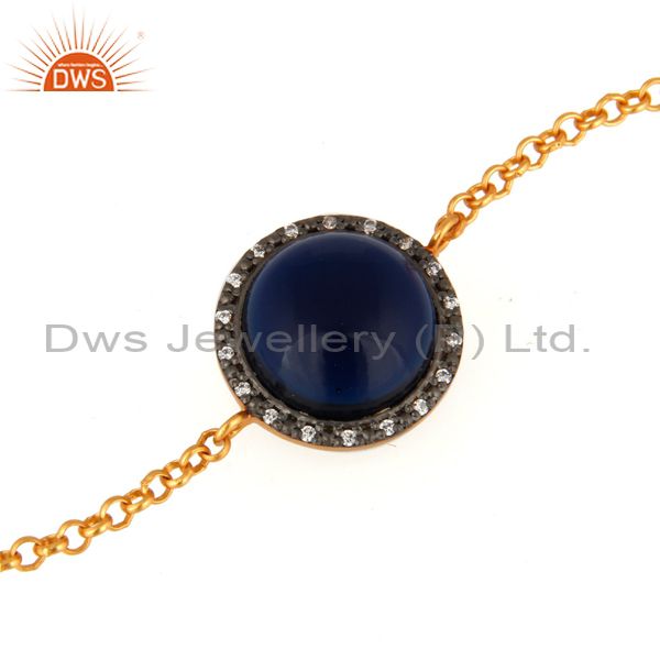 18K Gold Plated Sterling Silver Blue Corundum And White Zircon Accent Bracelet