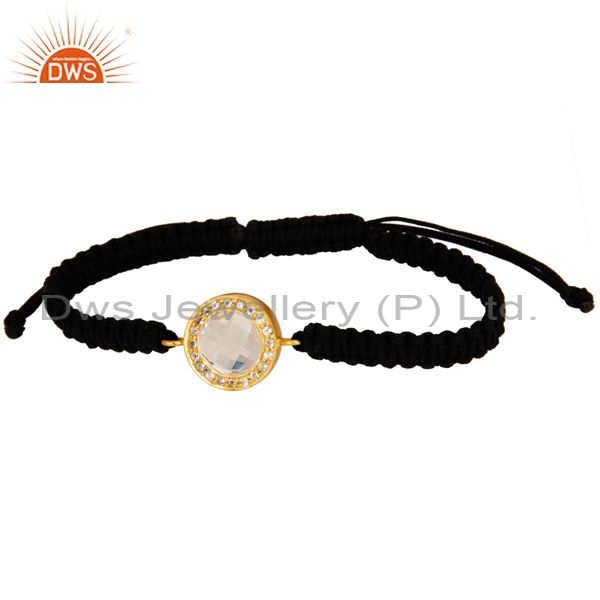 18K Gold Plated Sterling Silver Crystal & Topaz Macrame Adjustable Bracelet