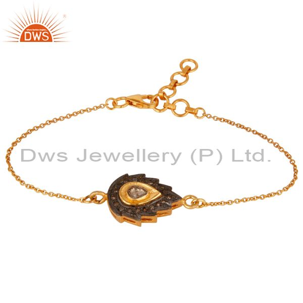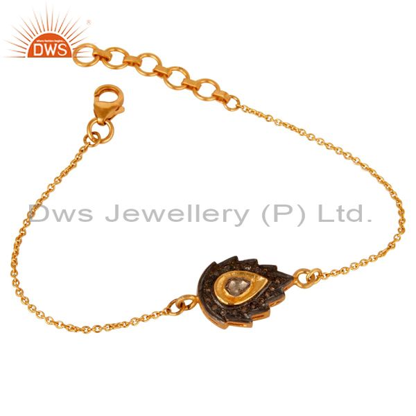18K Gold Plated Sterling Silver Diamond Bracelet With Diamond Polki
