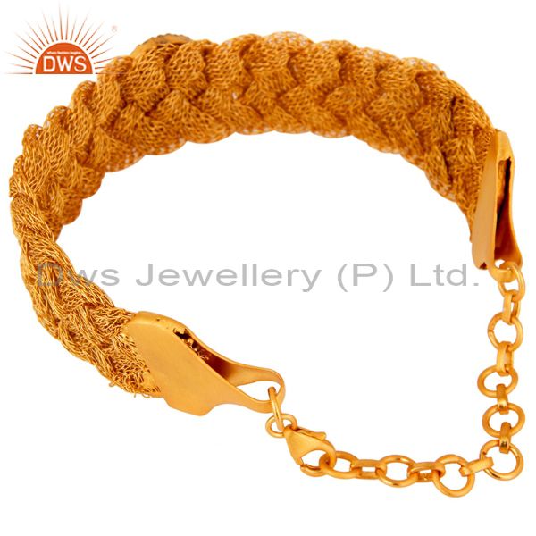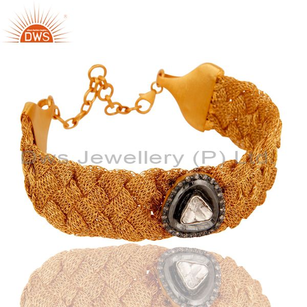 18K Gold Plated Sterling Silver Diamond Wire Mesh Bracelet Designer Meshwork