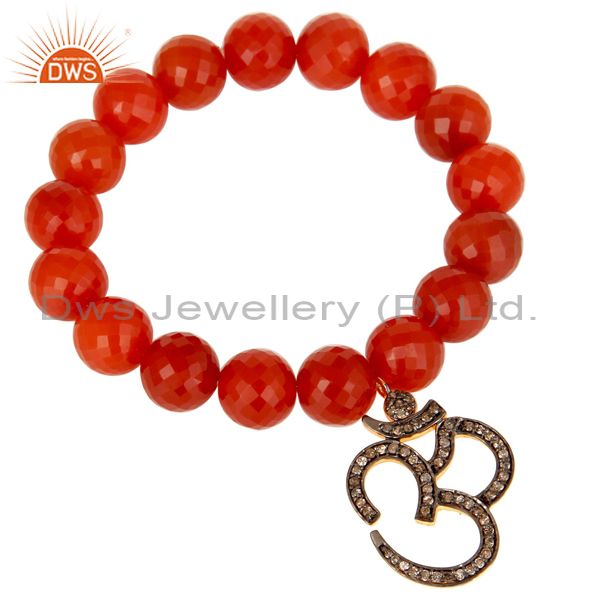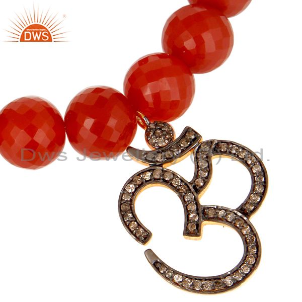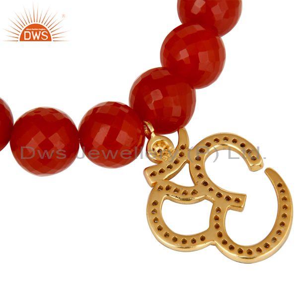 18k Gold Plated Sterling Silver God Symbal Design Diamond & Red Onyx Bracelet