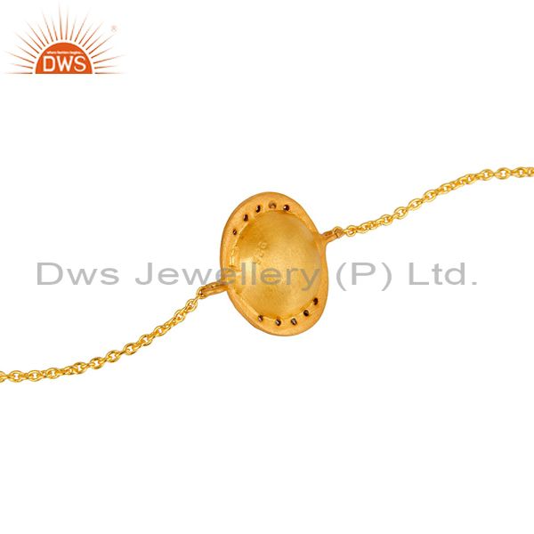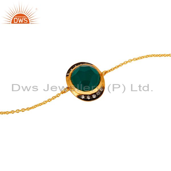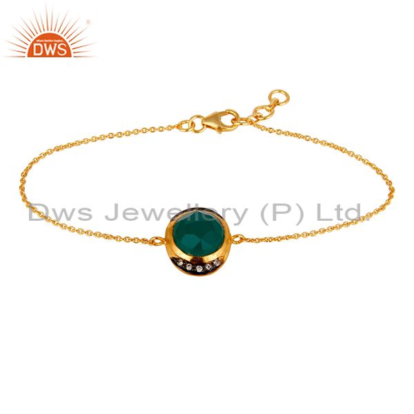 18K Gold Plated Sterling Silver Green Onyx And Cz Fashion Chain Bracelet