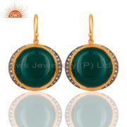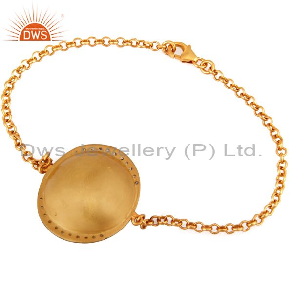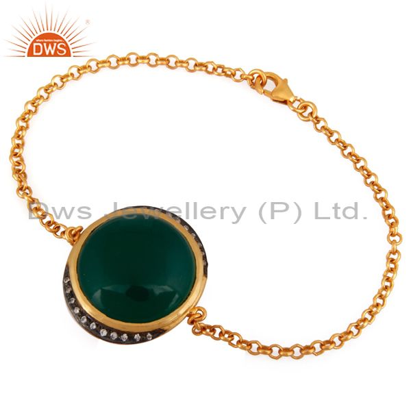 18K Gold Plated Sterling Silver Green Onyx Gemstone Bracelet With Cz