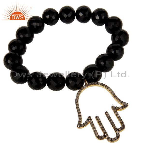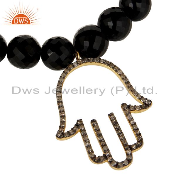 18k Gold Plated Sterling Silver Hand Design Diamond & Black Onyx Charms Bracelet