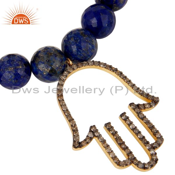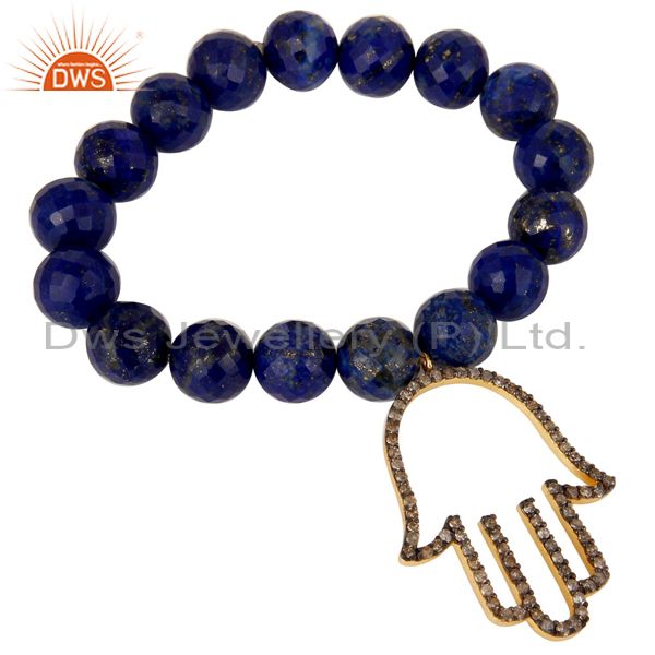 18k Gold Plated Sterling Silver Hand Design Diamond & Lapis Charms Bracelet