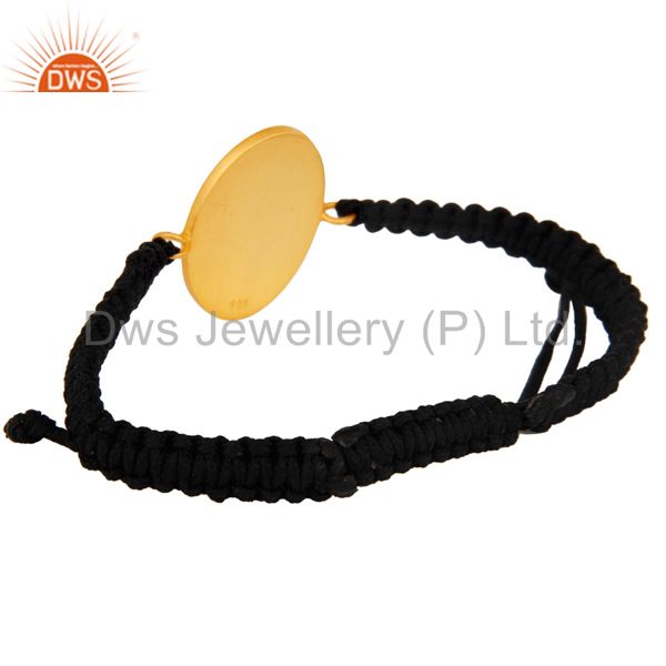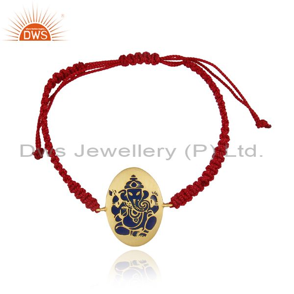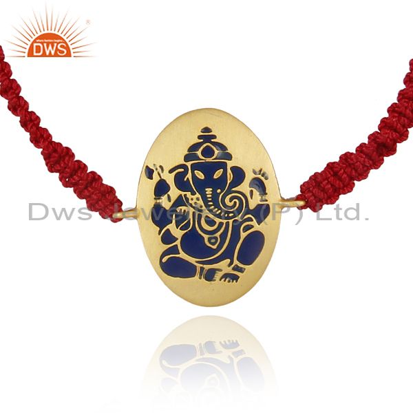 18K Gold Plated Sterling Silver Indian God Ganesha Blue Enamel Macrame Bracelet