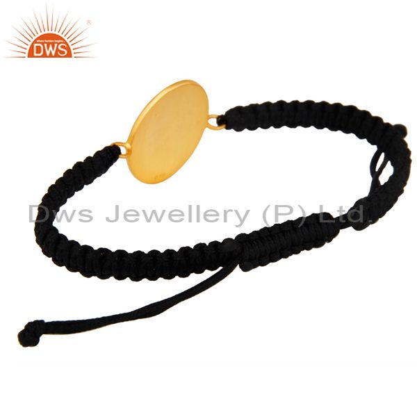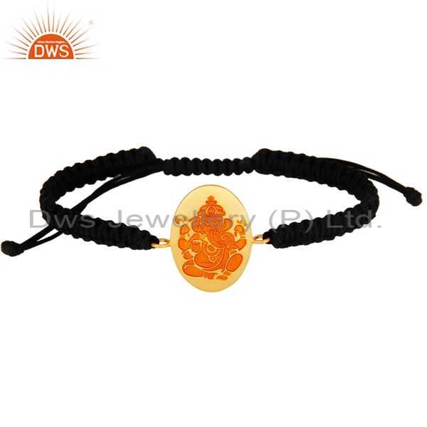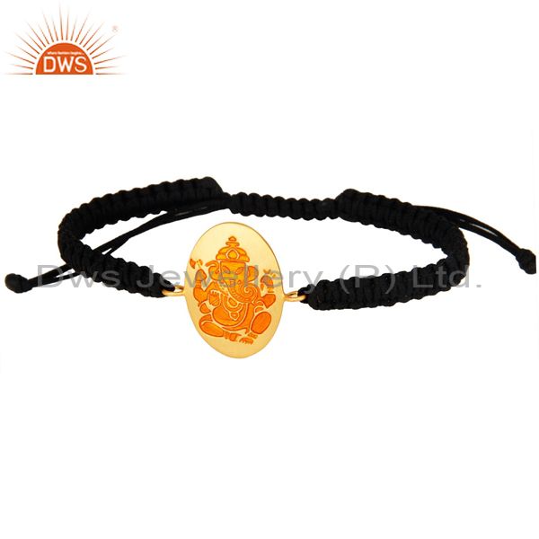 18K Gold Plated Sterling Silver Indian God Ganesha Orange Enamel Macram Bracelet