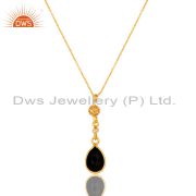 18K Gold Plated Sterling Silver White Topaz And Black Onyx Charms Bracelet