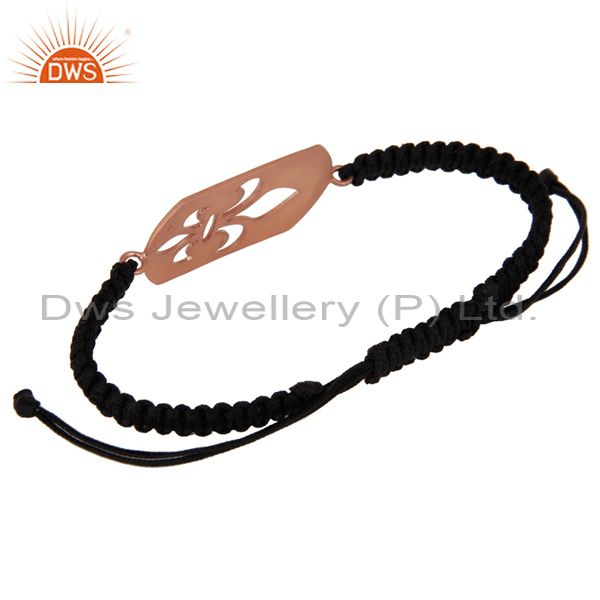 18K Rose Gold Plated Sterling Silver Fleur-De-Lis Macrame Adjustable Bracelet