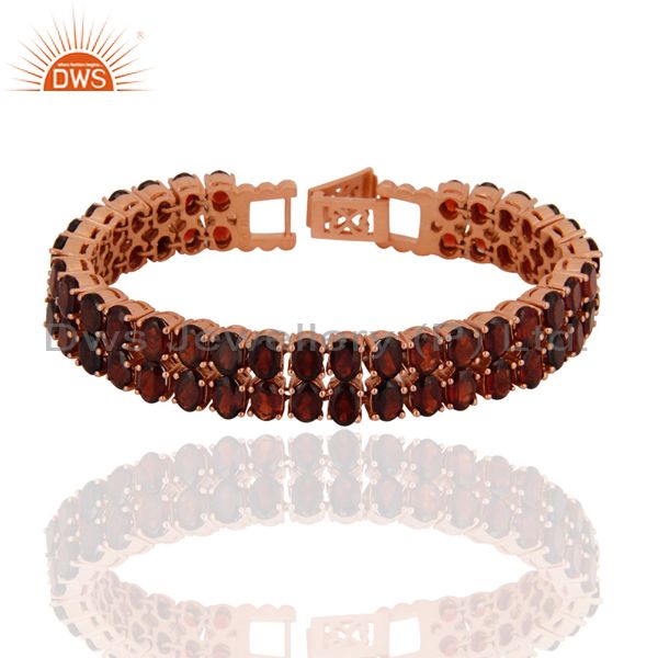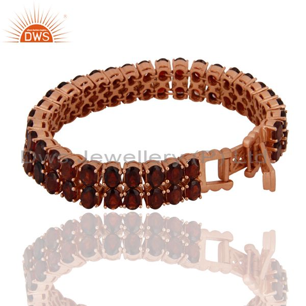 18K Rose Gold Plated Sterling Silver Natural Garnet Tennis Bracelet Jewelry