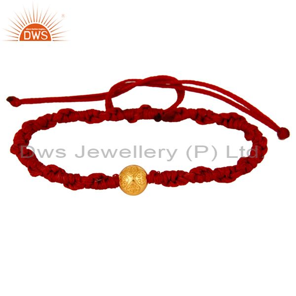 18K Yellow Gold Heart Design Engraved Round Bead Macrame Bracelet