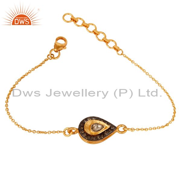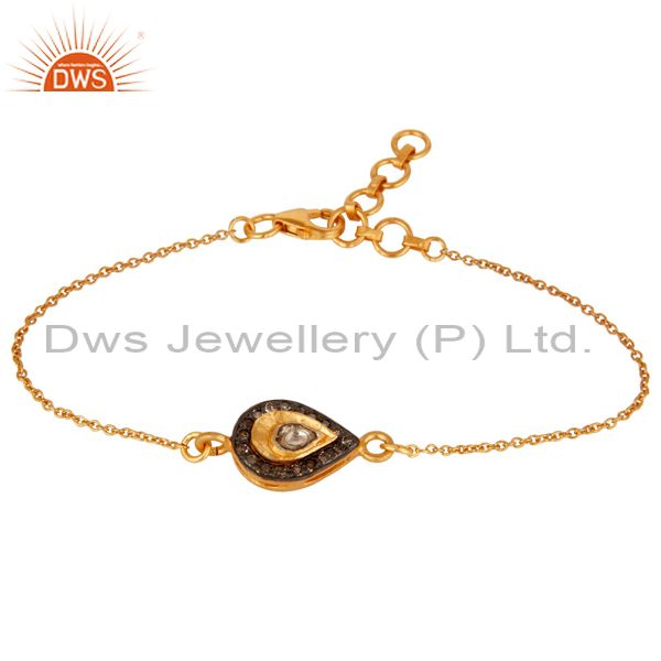 18K Yellow Gold Plated 925 Silver Diamond Adjustable Chain Bracelet