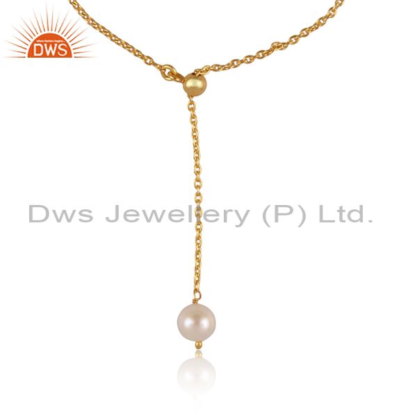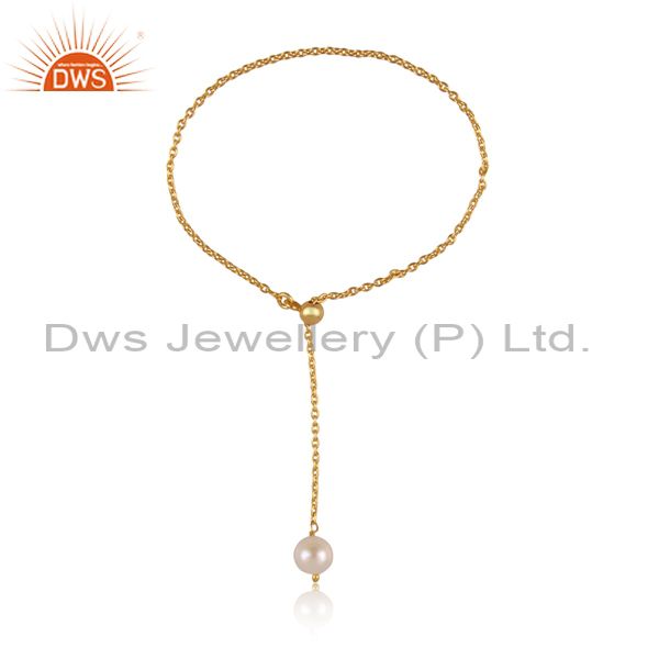 18K Yellow Gold Plated 925 Sterling Silver Pearl Beads Chain Drops Bracelet