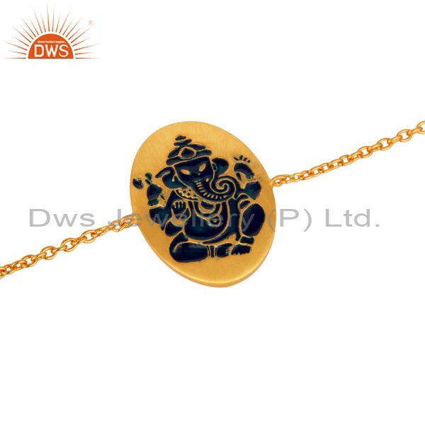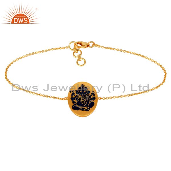 18k Yellow Gold Plated Indian God Ganesh Peacock Color Enamel Bracelets