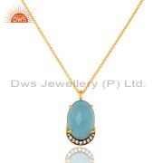 18K Yellow Gold Plated Sterling Silver Aqua Blue Chalcedony Chain Bracelet