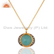18K Yellow Gold Plated Sterling Silver Aqua Chalcedony Designer Chain Bracelet