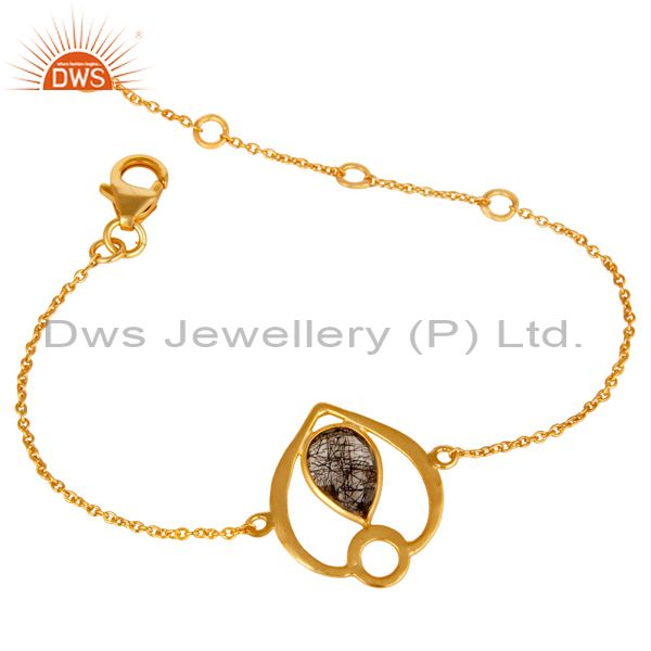 18K Yellow Gold Plated Sterling Silver Black Rutile Gemstone Bracelet