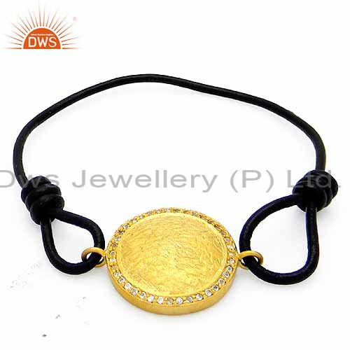 18K Yellow Gold Plated Sterling Silver Cubic Zirconia Disc Macrame Bracelet