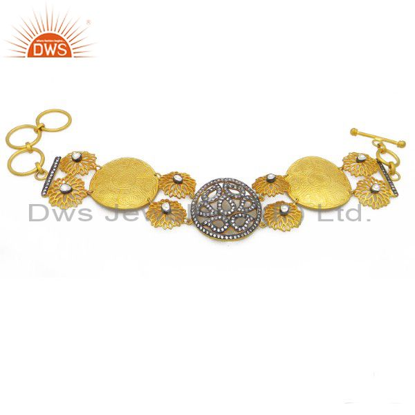 18K Yellow Gold Plated Sterling Silver Filigree Design Fashion Bracelet With Cz