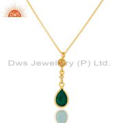 18K Yellow Gold Plated Sterling Silver Green Onyx And White Topaz Bracelet