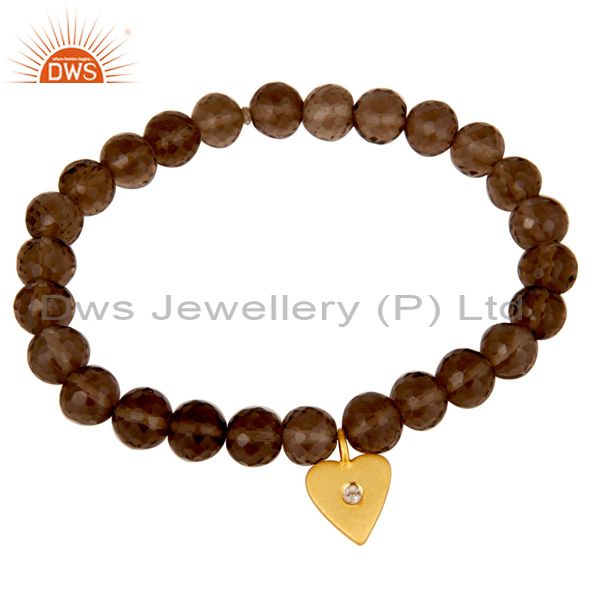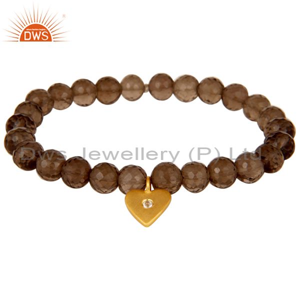 18k Yellow Gold Plated Sterling Silver Heart Bead Bracelet with Smokey & Topaz