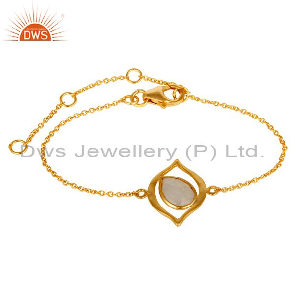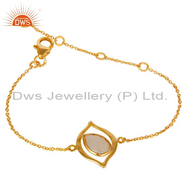 18k Yellow Gold Plated Sterling Silver Jewelry Rainbow Moonstone Bracelet