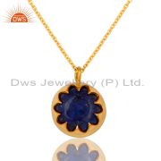 18K Yellow Gold Plated Sterling Silver Lapis Lazuli Gemstone Chain Bracelet
