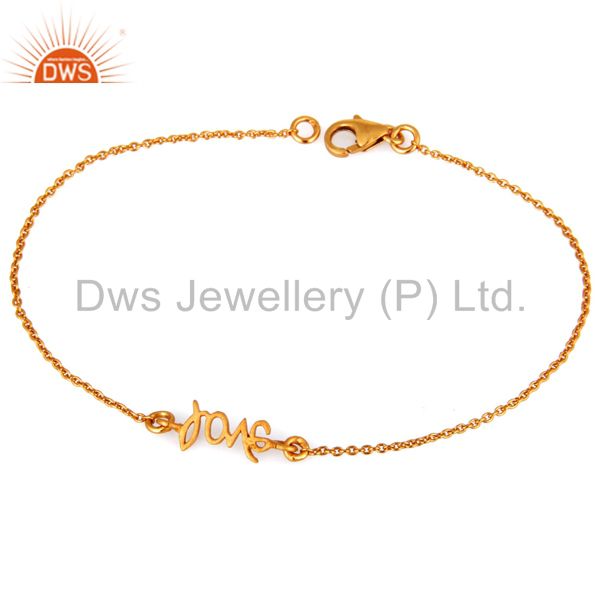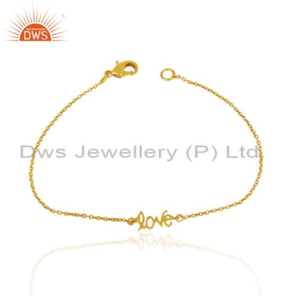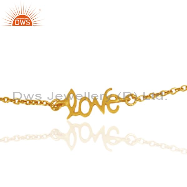 18K Yellow Gold Plated Sterling Silver Love Charm Chain Bracelet Jewelry