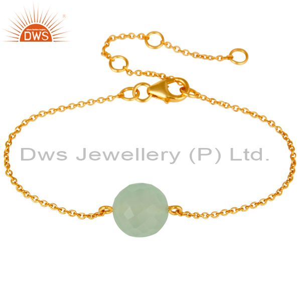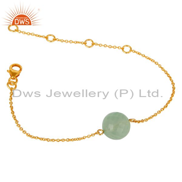 18K Yellow Gold Plated Sterling Silver Prehnite Chalcedony Chain Bracelet