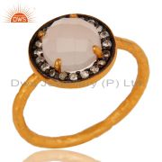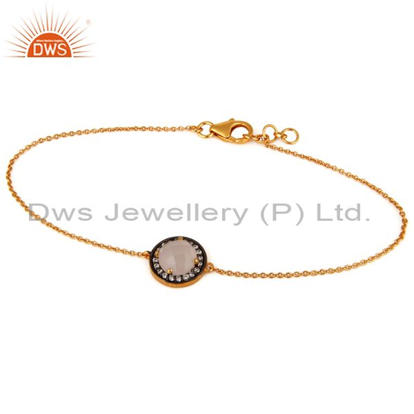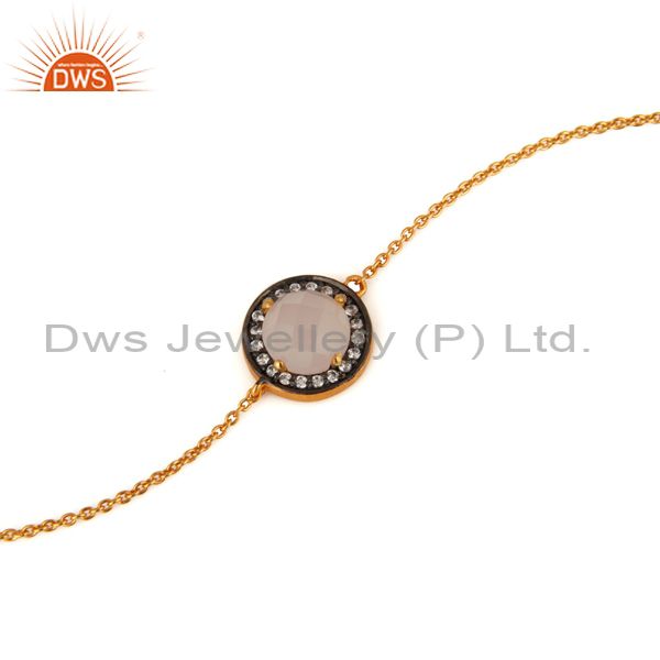 18K Yellow Gold Plated Sterling Silver Rose Chalcedony Gemstone Bracelet With Cz