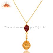 18K Yellow Gold Plated Sterling Silver Ruby And White Topaz Ball Chain Bracelet