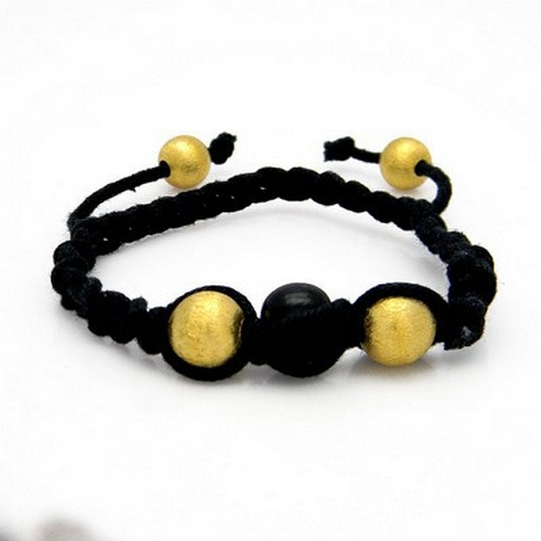 18K Yellow Gold Plated Sterling Silver Spheres Black Thread Macrame Bracelet