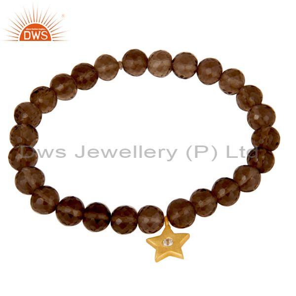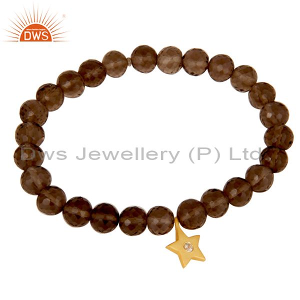 18k Yellow Gold Plated Sterling Silver Star Bead Bracelet with Smokey & Topaz