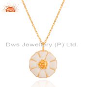 18K Yellow Gold Plated Sterling Silver White Enamel Designer Fashion Bracelet
