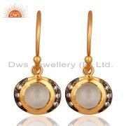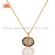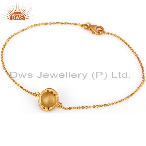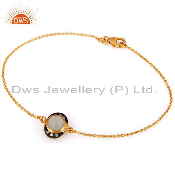 18K Yellow Gold Plated Sterling Silver White Moonstone Chain Bracelet With Cz