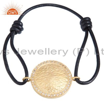18K Yellow Gold Plated Sterling Silver White Topaz Disc Charm Macrame Bracelet