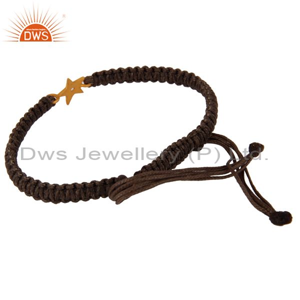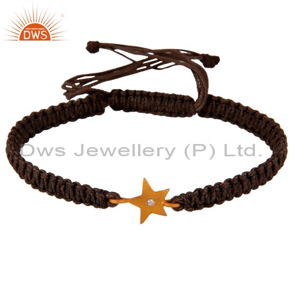 18K Yellow Gold Plated Sterling Silver White Topaz Satr Charm Macrame Bracelet