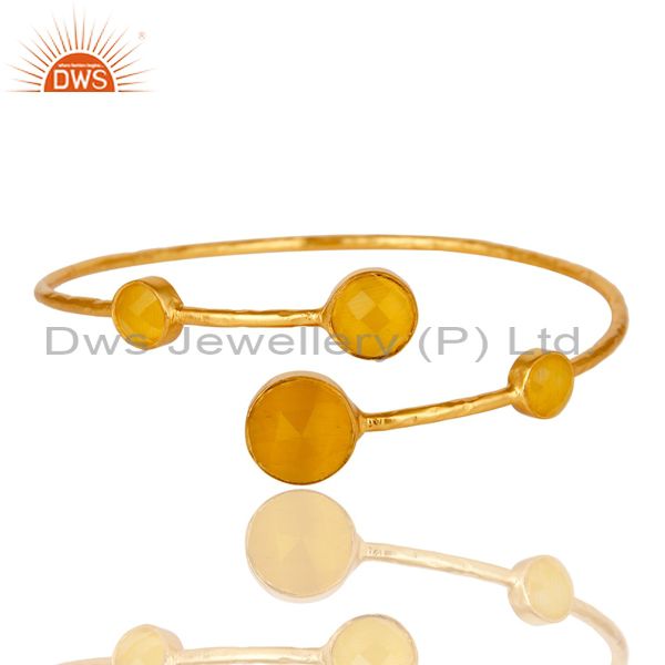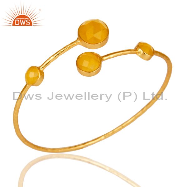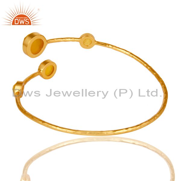 18K Yellow Gold Plated Yellow Moonstone Sterling Silver Handmade Cuff Bangle