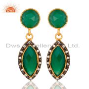 22K Yellow Gold Plated 925 Sterling Silver Green Onyx & Cz Fashion Bracelet