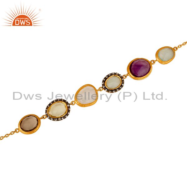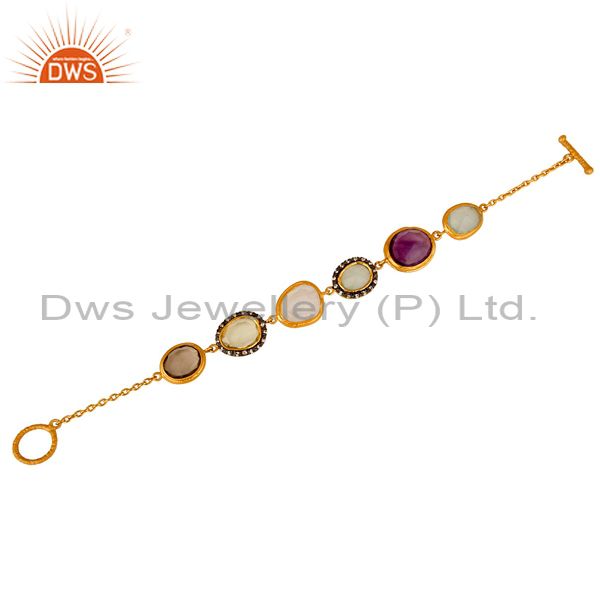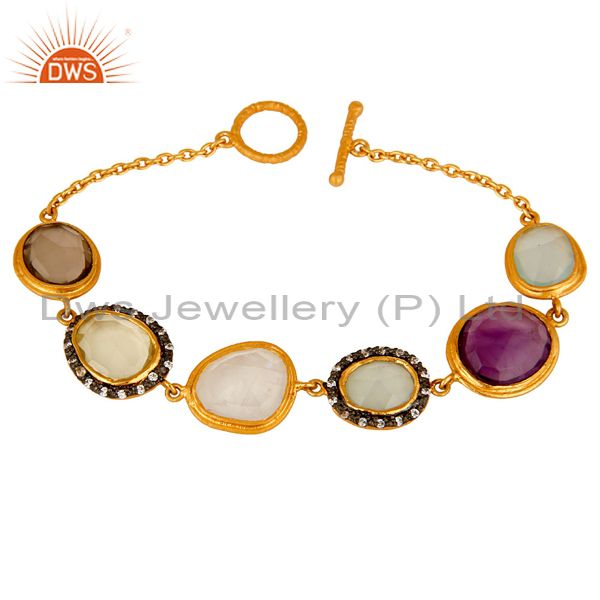 22K Yellow Gold Plated Sterling Silver Multi Colored Gemstone Bracelet With Cz