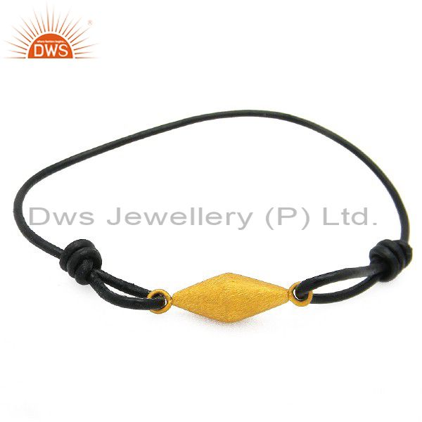 22K Yellow Gold Plated Sterling Silver Tube Black Cord Macrame Bracelet