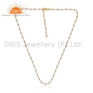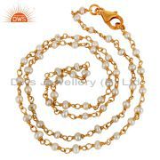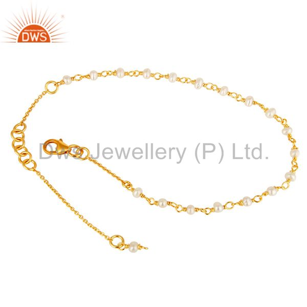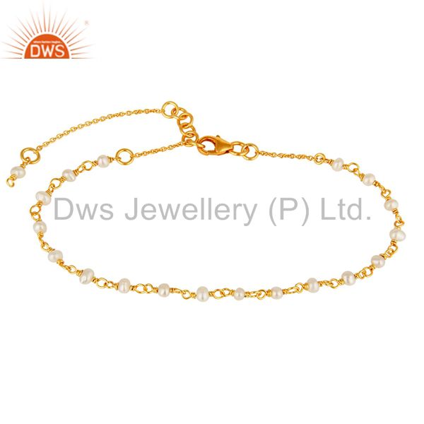 22K Yellow Gold Plated Sterling Silver White Pearl Beaded Chain Bracelet