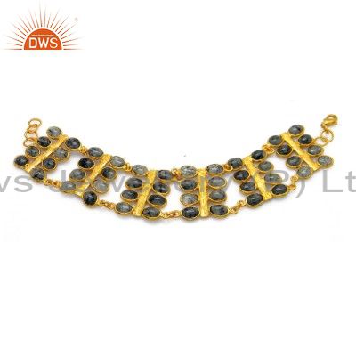 24K Yellow Gold Plated Brass Tourmalatied Quartz Designer Fashion Bracelet